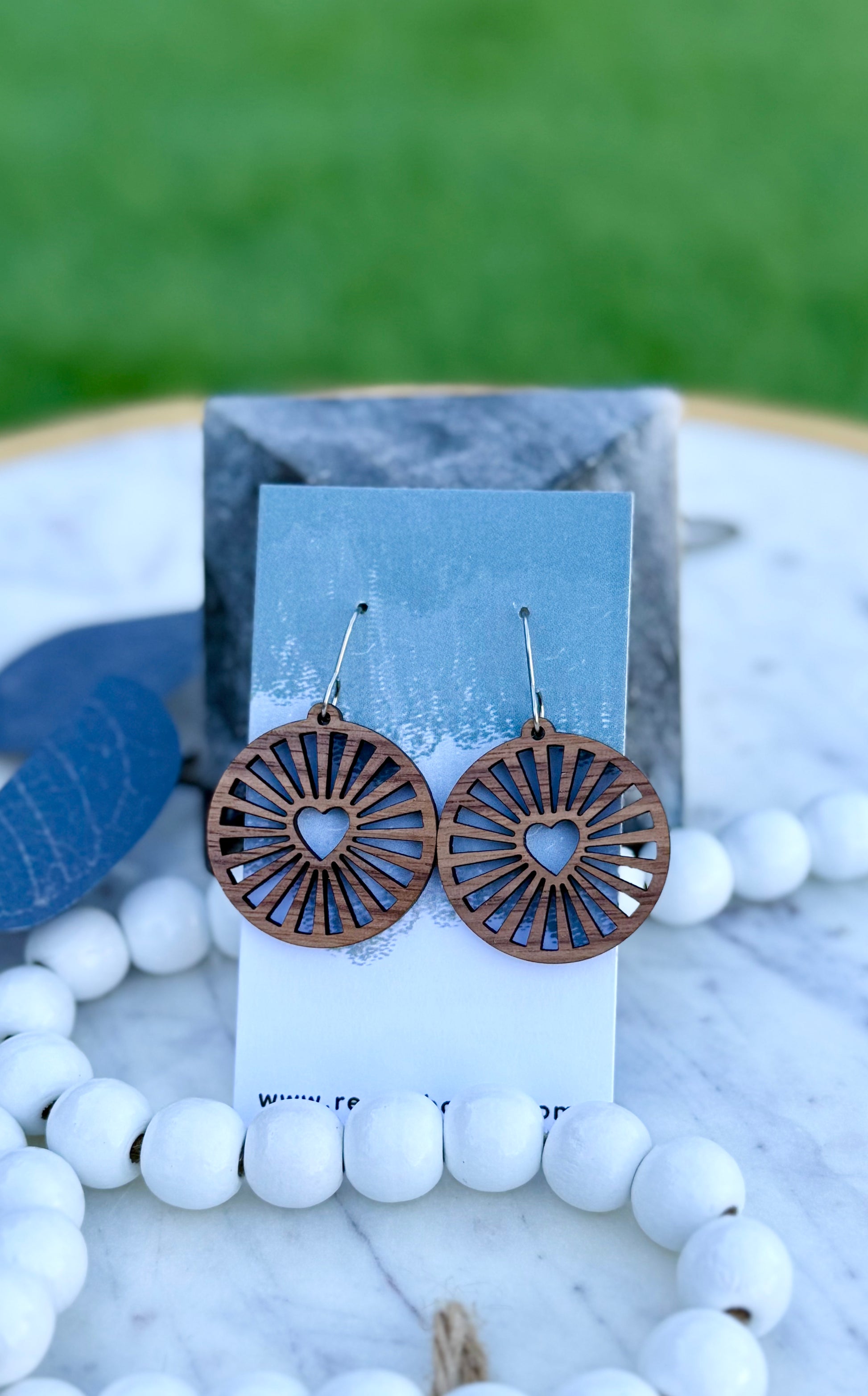 Heart Burst - Walnut Wood Earrings